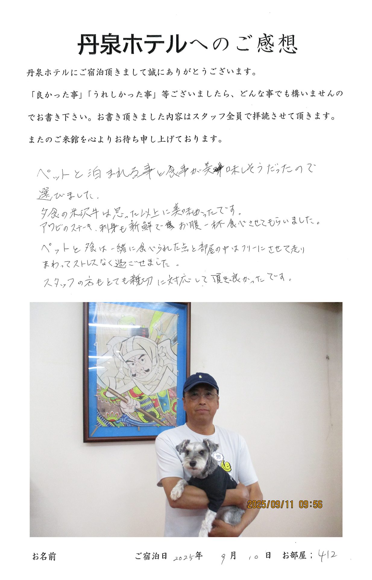 カテゴリー:お客様の声, ペットとご宿泊頂いた方のお客様の声