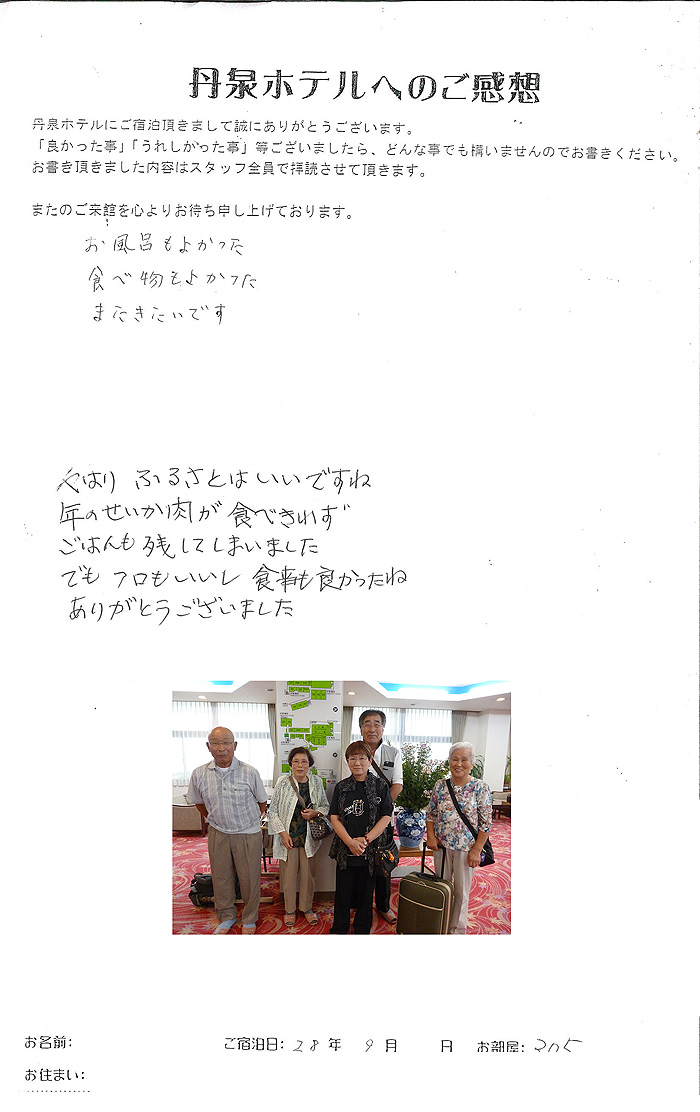 Tags: お客様の声, お料理, お風呂, 丹泉ホテル, 従業員, 気配り, 温泉, 花