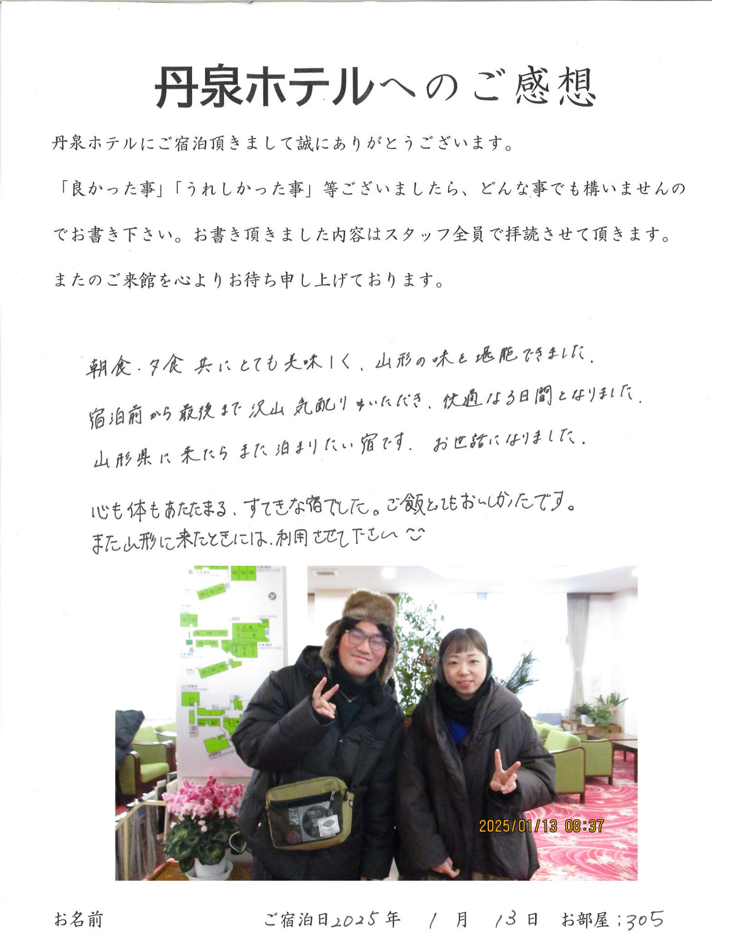 カテゴリー:お客様の声 Tags: お客様の声, クチコミ, スタッフ, 丹泉ホテル