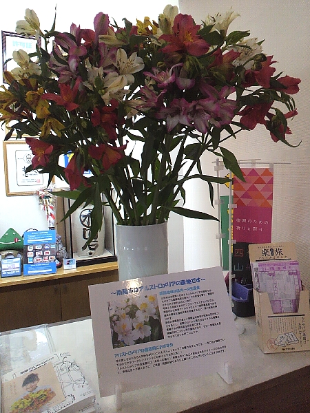 南陽名産「アルストロメリア」飾っております 投稿日時: 2014年3月29日 投稿者: 丹泉ホテル 返信 南陽市がアルストロメリアの産地ということで 頂いた アルストロメリアをロビーフロント前に飾っております^^ 照明の関係で写真はきれいに撮れませんでしたが 実際もっときれいですのでお越しの際は是非ご覧ください