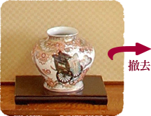 安心しておくつろぎいただけるよう、壺や壊れやすい置物をあらかじめ撤去するか安全なものに交換いたします。