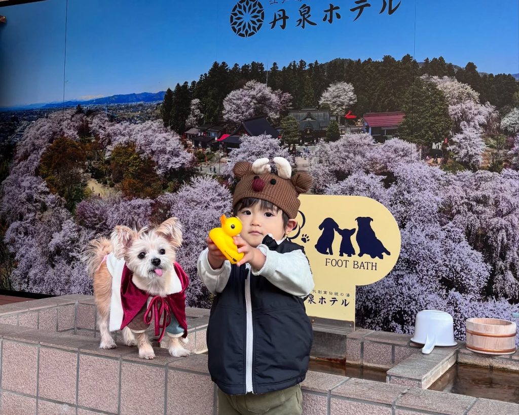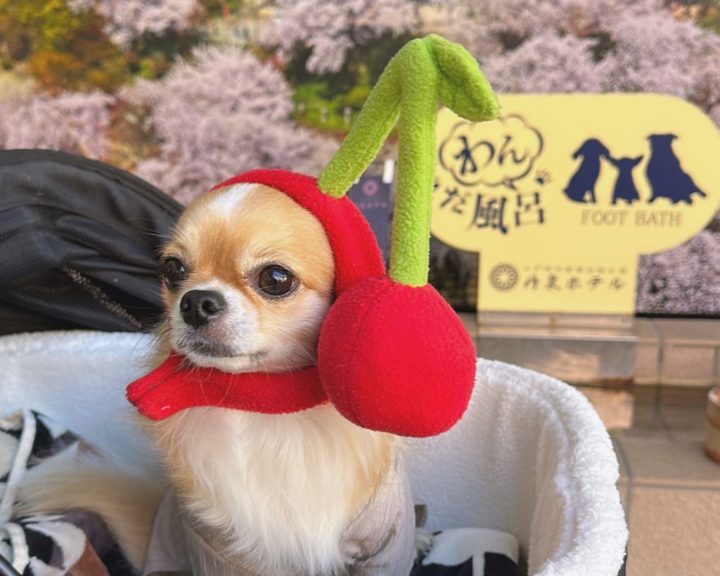 さくらんぼの被り物や、アヒルくんとのツーショットなど、ワンちゃんの足湯を満喫していただけたようでうれしいです!