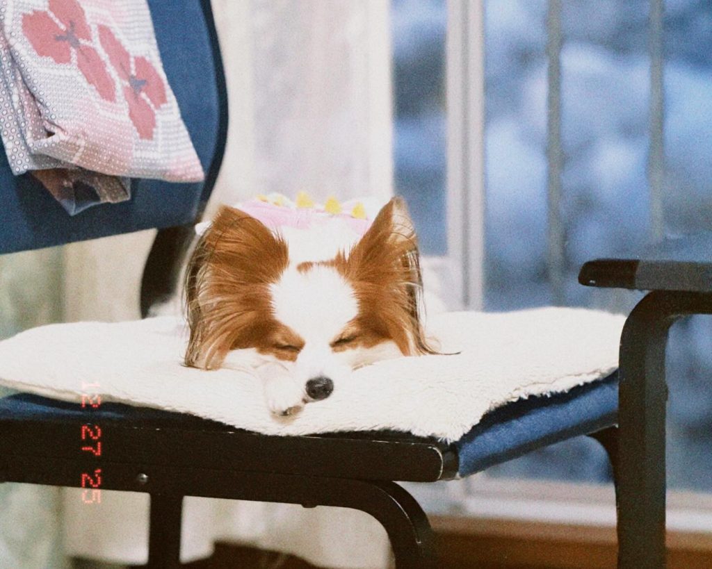 レトロ加工とワンちゃん・旅館の組み合わせがとても素敵な雰囲気で、思わず一緒に眠りたくなってしまいますね・・・。